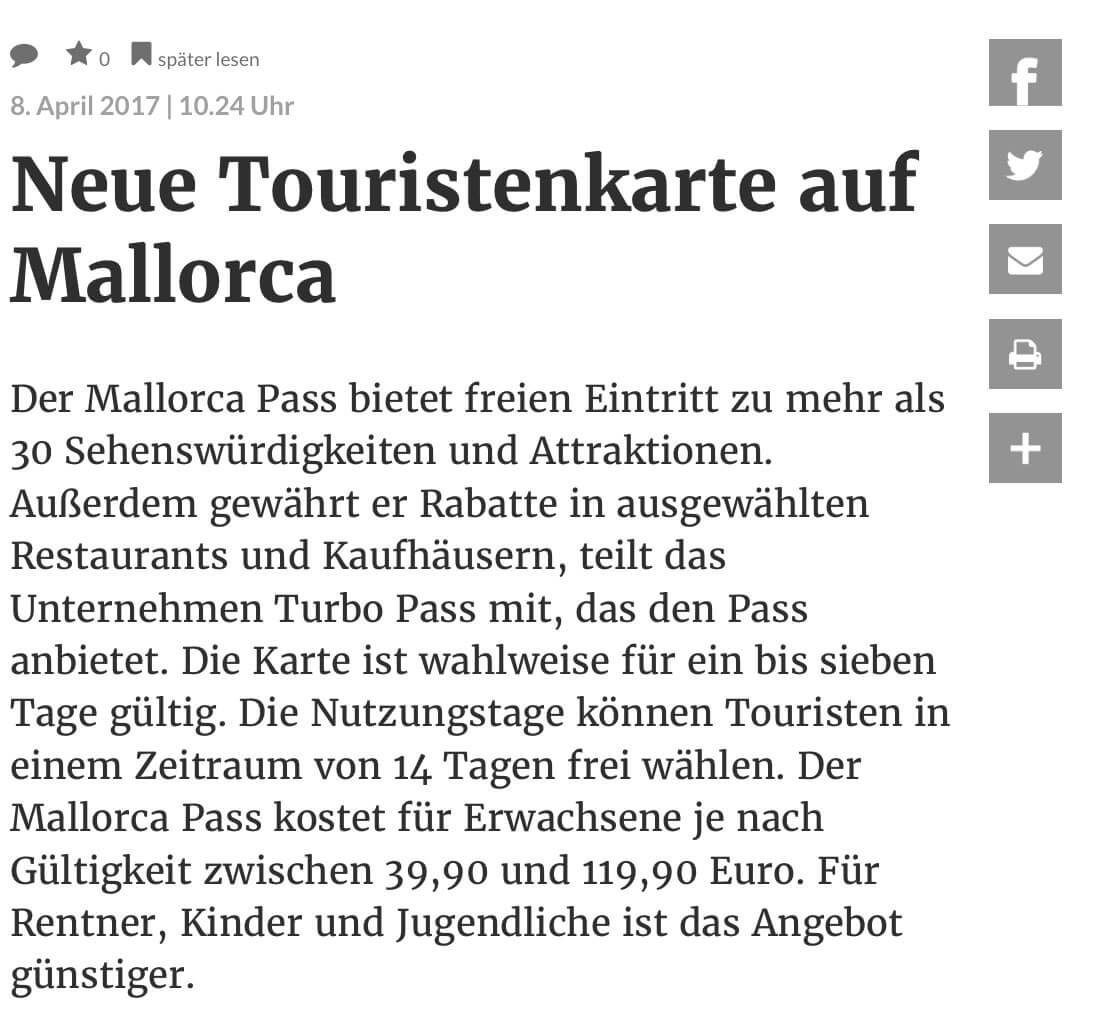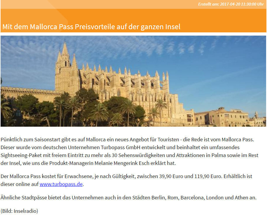 www.turbopass.de gebucht werden. Das Starter-Paket kostet 79,90 Euro pro Person, die Variante Classic 109,90 Euro und der City Pass Best 129,90 Euro. Kinder bis 12 Jahre und Jugendliche bis 17 Jahre zahlen ermäßigte Preise. Die Nutzung des öffentlichen Nahverkehrs kostet ab 25 Euro pro Person. Der Pass wird nach Zahlungseingang umgehend per Email zum Ausdrucken bereitgestellt oder per Post zugeschickt.